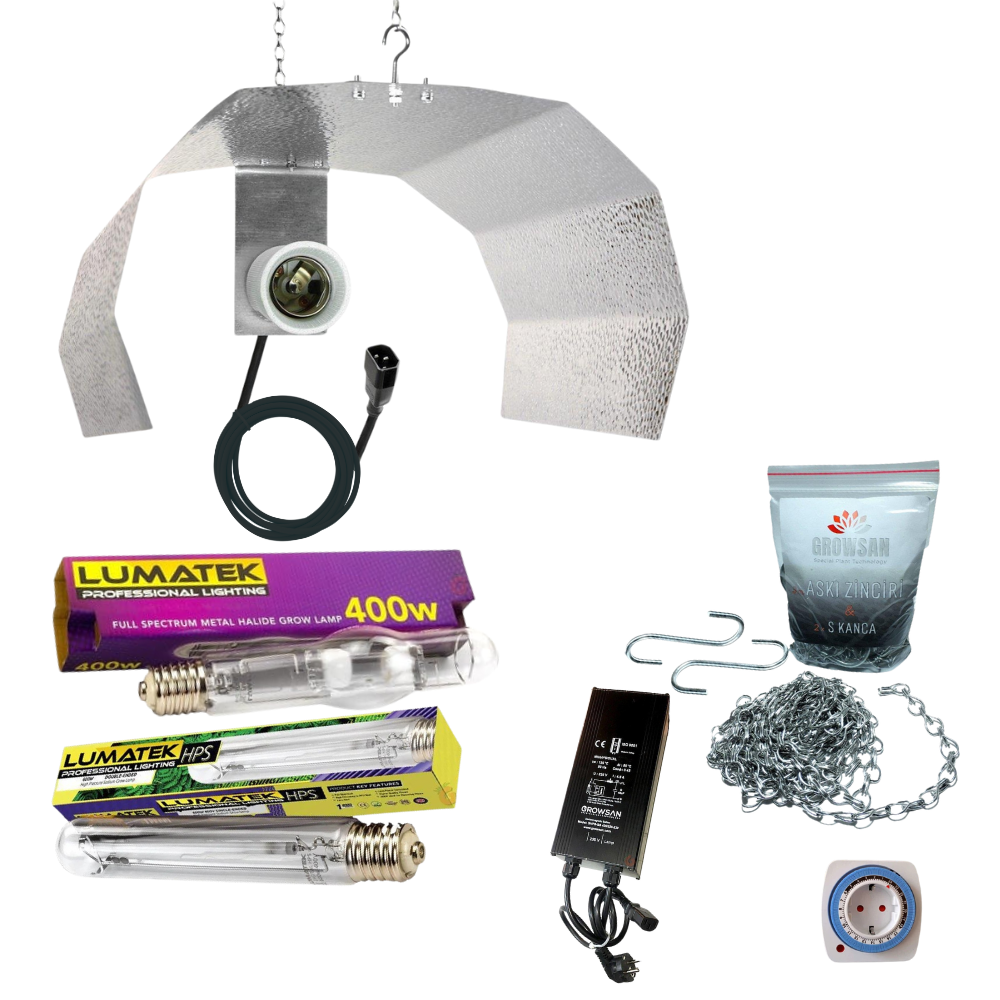 Lumatek 400w Grow/Bloom Set; 400 Watt'lık bir bitki yetiştirme lambasını çalıştırmaya yönelik gerekli tüm ürünleri barındıran yetiştirme lambası setidir. Set içeriğindeki ürünler beraber çalıştırılarak test edilmiştir. Ürünler ahenk içinde ve yüksek verimlilikle çalışmaktadır