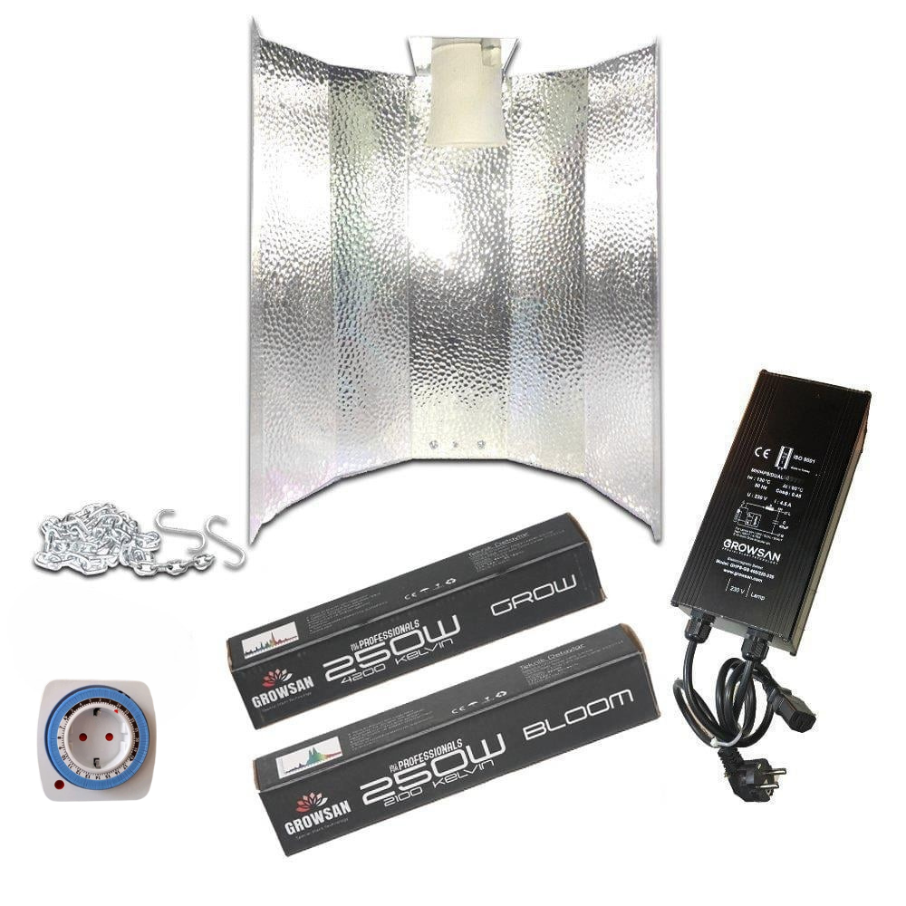 Çalışma Prensibi: Bu set; lamba, balast, reflektör, mekanik zaman saati ve aski zincileri ile kancalardan oluşan tam ve yüksek fonksiyonlu 250w yetiştirme lambası setidir. Balast ana akım elektrik gücünü doğru voltaj değerine optimize ederek lambanın çalışmasını sağlamaktadır. Yetiştirme lambası elektrik gücünü yetişmekte olan bitkiler için uygun ışık spektrumuna dönüştürmektedir. Lambayı tutmakta olan reflektör ise, lambanın ortaya çıkardığı ve kendisine yansıttığı ışık spektrumunu tekrar yetiştirme ortamına yansıtmak suretiyle bahçe verimliliğinizi arttırmaktadır. Zira reflektörden geri yansıyan ışık bitki tarafından kullanılabilecektir.
