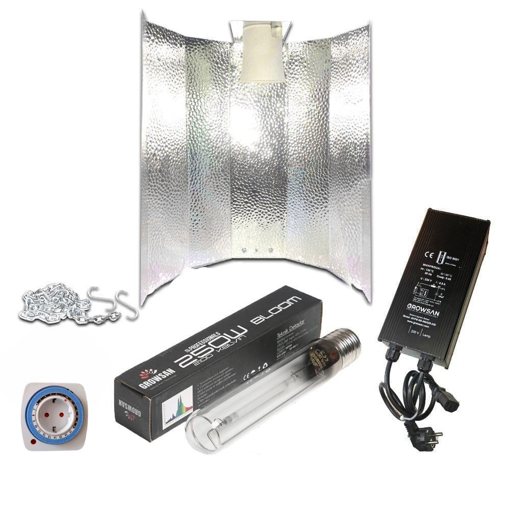 Growsan 250w SHP Set; 250 Watt'lık bir bitki yetiştirme lambasını çalıştırmaya yönelik gerekli tüm ürünleri barındıran yetiştirme lambası setidir. Set içeriğindeki ürünler beraber çalıştırılarak test edilmiştir. Ürünler ahenk içinde ve yüksek verimlilikle çalışmaktadır.